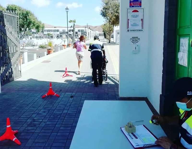 El Ayuntamiento, dentro de la línea permanente en las tareas de prevención por el covid 19, ejecuta trabajos periódicos de desinfección en el interior de San Román. La Concejalía de Sanidad de Arrecife cuenta con la colaboración de los efectivos de Gorec Emergencias para las tareas de control y aforo en los accesos al cementerio capitalino.