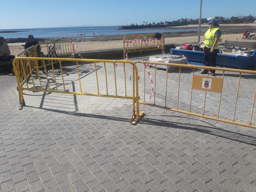 Junto a este quiosco, también ha sido retirado el 'solmáforo', para un nuevo emplazamiento. Cerca de este mirador se localizan los baños públicos de la playa. Desde el pasado año, el Ayuntamiento de Arrecfe ha dotado a estas instalaciones de un servicio permanente de vigilantes de seguridad para controlar los incívicos usos de los aseos, y los frecuentes daños a su mobiliario e instalaciones.