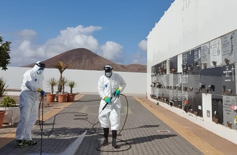 Desde estas semanas de alerta, la Concejalía de Sanidad de Arrecife, bajo la dirección de la concejal popular Saro González Perdomo, está redoblando los trabajos para la desinfección del cementerio de Arrecife, trabajos se proseguirán ejecutando de manera continua mientras dure le alerta para frenar la propagación del coronavirus.