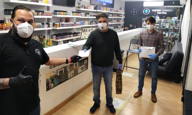 Armando Santana, concejal de Comercio y Consumo del Ayuntamiento de arrecife, en compañía del Secretario General de Felapyme, Daniel González, iniciaba este mañana una campaña de reparto de mascarillas de protección individual entre los comerciantes que están prestando sus servicios en la zona centro de Arrecife y sus empleados, de cara a que pueden seguir ofreciendo sus servicios y afrontar las próximas distintas fases de desescalada, anunciadas por el Gobierno del Estado, con todas las garantías de protección sanitarias.