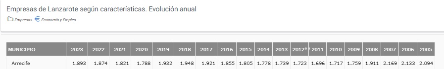 La capital de Lanzarote sigue aportando datos económicos sobre su buena evolución para la implantación de nuevas empresas y creación de empleo. El Centro de Datos de Lanzarote, ente adscrito al Cabildo de Lanzarote, ha difundido las estadísticas oficiales sobre el número total de empresas existentes en la isa de los volcanes. Arrecife, la capital, cerró el 2023 con un total de 1893 empresas operativas, el 32, 2 % del total de Lanzarote, que se situó en 5.085.