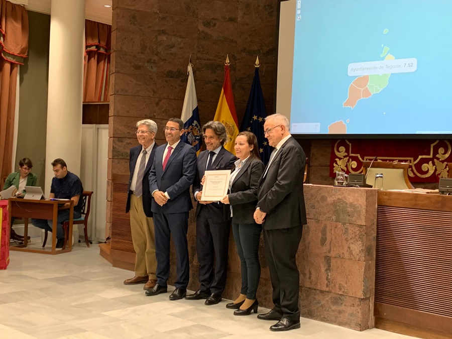 El alcalde de Teguise, Oswaldo Betancort, ha recibido este miércoles el diploma que acredita que el Ayuntamiento de Teguise ha hecho los deberes en materia de transparencia, consiguiendo superar la media de la comunidad con 7,52 puntos en su informe de evaluación correspondiente a 2018.