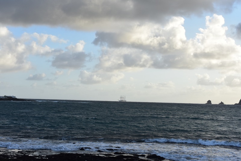 El 'Juan Sebastián Elcano' ya está desde esta mañana de jueves, 7 de noviembre, en las aguas de El Río, que unen a la isla de La Graciosa con Lanzarote. La presencia del buque se enmarca en señal de homenaje a La Graciosa, tras ser reconocida como la octava habitada del Archipiélago en el nuevo Estatuto de Autonomía de Canarias.