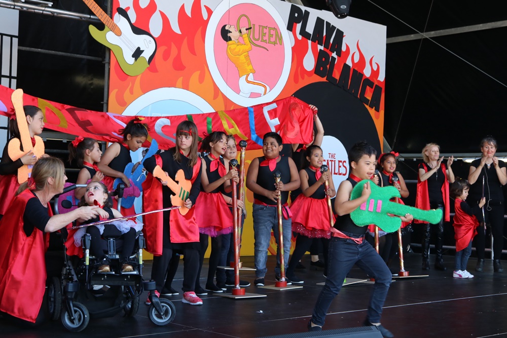 El Carnaval de Playa Blanca es otro de los eventos del municipio de Yaiza que da cabida a la inclusión y la diversidad. El Ayuntamiento apoya en este caso al grupo artístico de Creciendo Yaiza que interpreta obras teatrales como actividad complementaria al trabajo terapéutico que desarrollan niños y jóvenes con necesidades educativas especiales. Veinte chicos dirigidos por Mercedes Arderius de Kankamusa Mágica presentaron el pasado domingo en el Carnaval Infantil su última obra inspirada en el rock and roll, vinculándose de esta forma a la alegoría propuesta este año por la fiesta de la localidad turística sureña.
