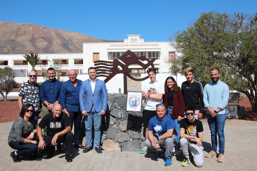 Una representación del Ayuntamiento de Yaiza y del IES Yaiza encabezada por el alcalde, Óscar Noda, y el director del centro, Juan Antonio Sabina, respectivamente, participaron junto a Francisco Ortiz y miembros de la comunidad educativa sureña del acto simbólico de inauguración de la escultura.