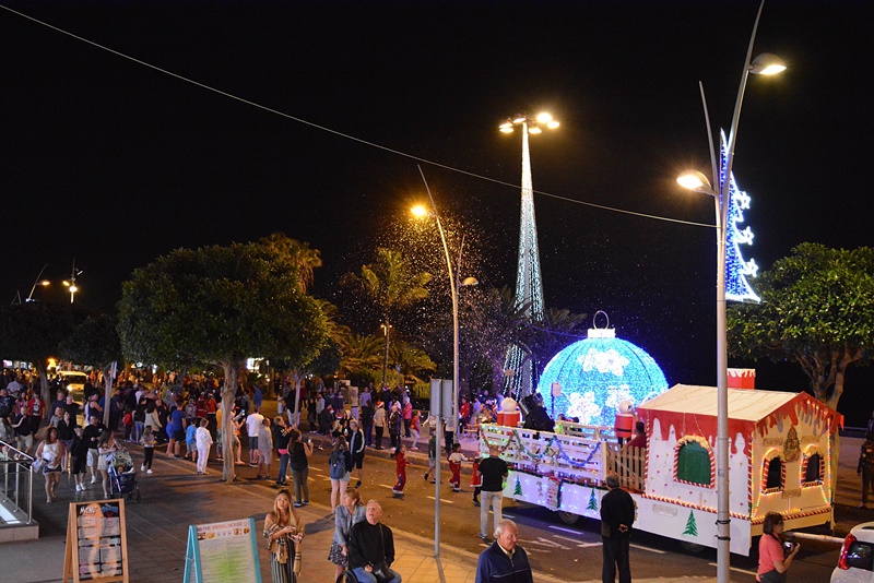 Según informan desde el Ayuntamiento, la comitiva discurrió desde las proximidades del Hotel San Antonio, a la altura de la Avenida Italia, paseando por toda la Avenida de las Playas para poner el desfile su final en las proximidades del Centro Deportivo Fariones. Durante el desfile se escucharon los buenos sonidos de la batucada que acompañaban a Papá Noel y los diferentes persajes infantiles célebres en los cuentos y programas de TV.
