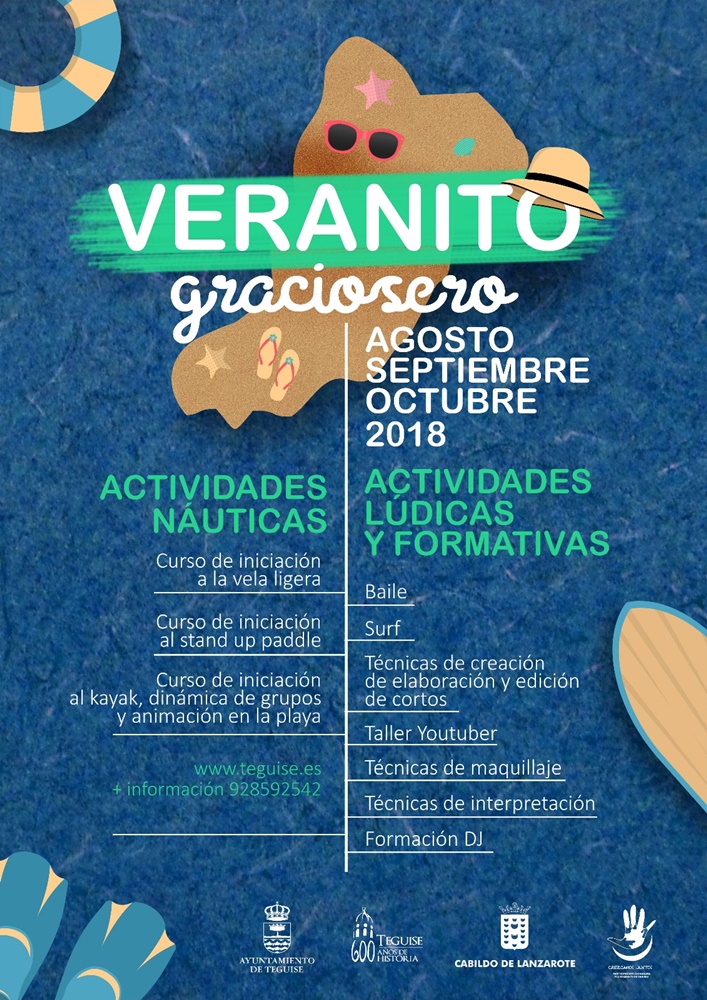 Hoy lunes 6 de agosto, arranca en La Graciosa "Veranito Graciosero" con una programación de actividades náuticas y lúdicas formativas, de las que podrán disfrutar los residentes gracioseros y visitantes. Las actividades organizadas por el Ayuntamiento de Teguise a través de la Concejalía de Juventud, que dirige Sergio Niz, se extenderán durante el mes de septiembre con cursos de iniciación a la vela ligera, stand up paddle, kayak, dinámica de grupos y animación en la playa.