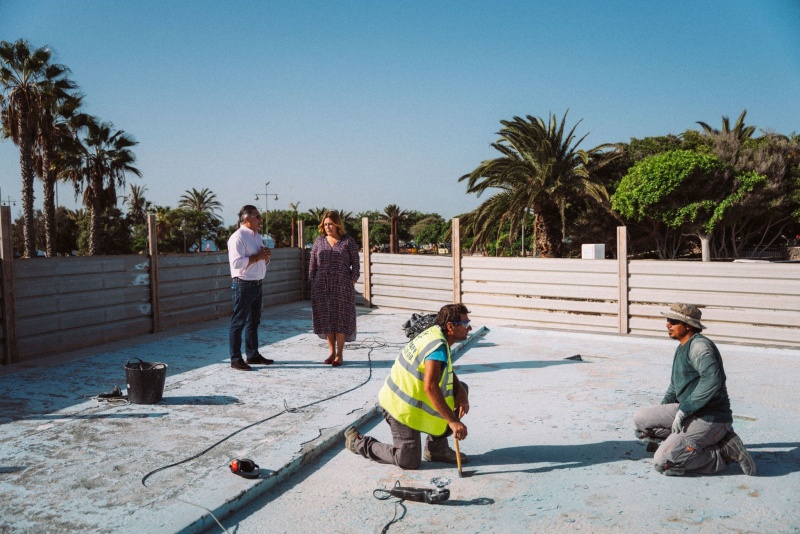 “Arrecife merece tener un parque a la altura de la tercera capital de Canarias, y durante estos tres años hemos trabajado para la reforma y el mantenimiento del Parque Temático, para que de esta manera los arrecifeños puedan pasear y disfrutar de este lugar”, señala la alcaldesa de Arrecife, Astrid Pérez, quien visitó las obras junto al edil de Obras, Roberto Herbón.
