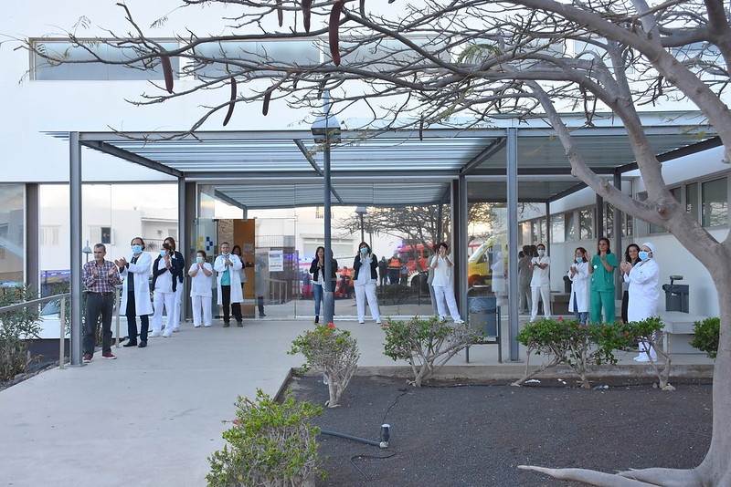 Concentración y aplauso a los sanitarios en Puerto del Carmen
