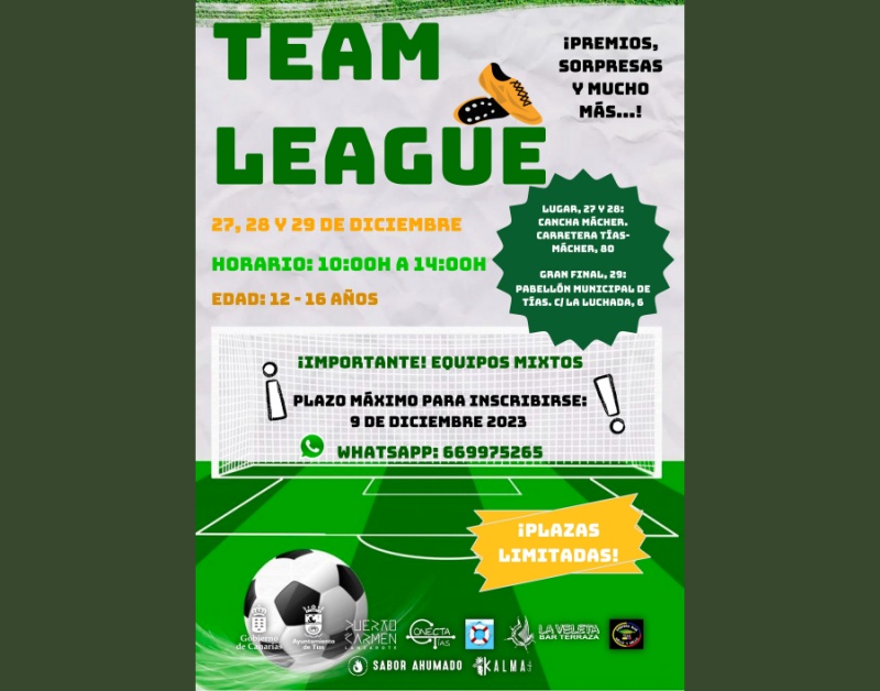 El torneo, denominado Team League, está destinado a jóvenes de entre 12 y 16 años y se desarrollará de 10 a 14 horas los días 27 y 28 de diciembre en la cancha de Mácher y el 29 de diciembre en el pabellón municipal de Tías.