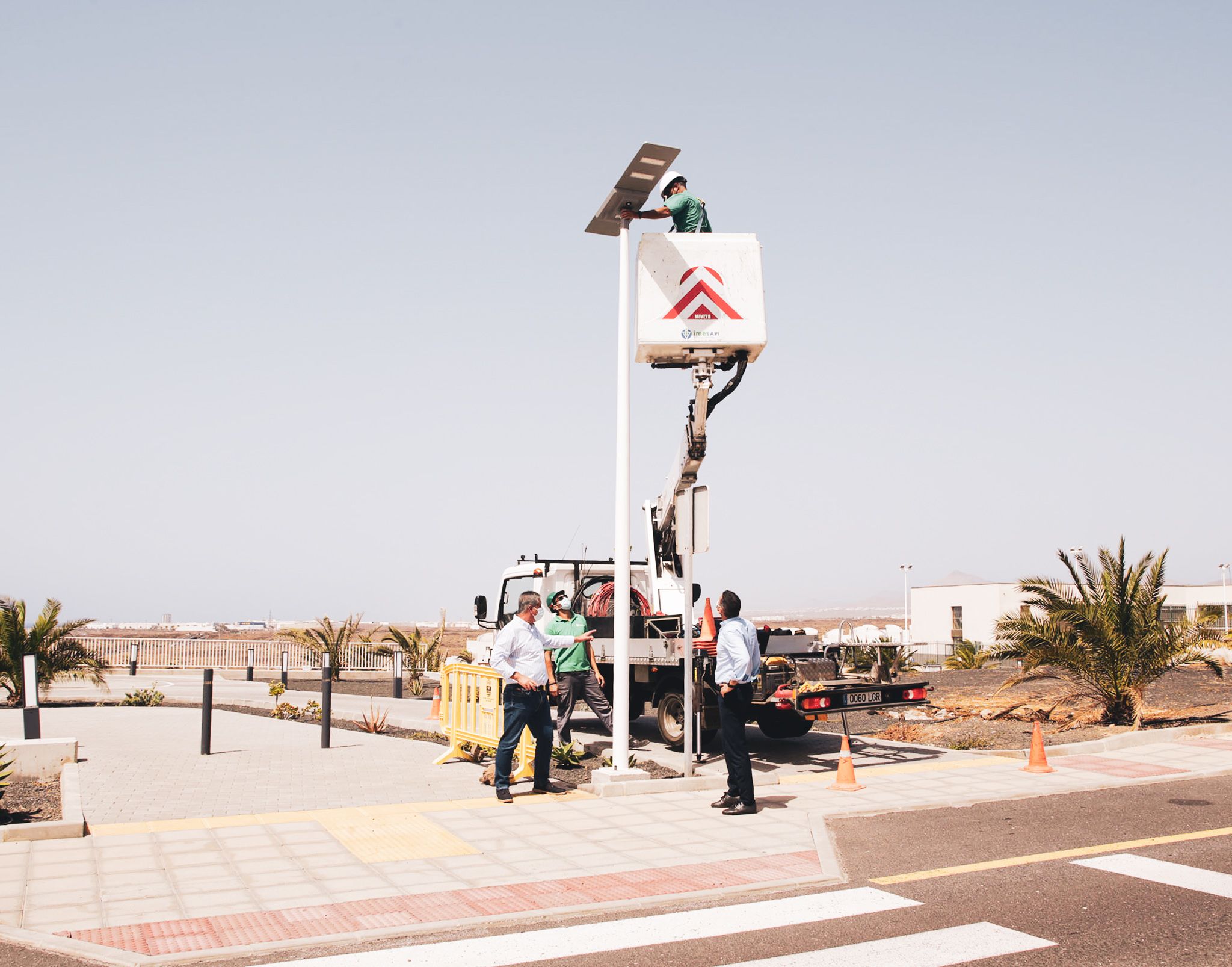 El alcalde de Teguise visitó dicha zona, donde operarios municipales terminaban de instalar las luminarias que mejorarán la seguridad en los pasos de cebra de esta vía y también de las principales arterias de doble vía de Costa Teguise y allí donde estén ubicados los cruces más críticos.