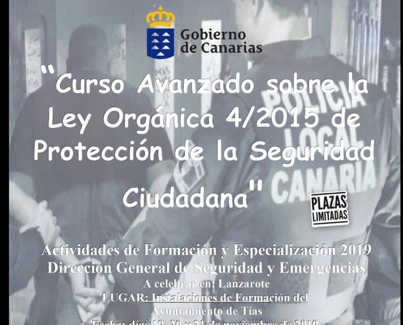 El "Curso avanzado sobre la Ley Orgánica 4/2015 de Protección de la Seguridad Ciudadana" está organizado por la Dirección General de Seguridad y Emergencias del Gobierno de Canarias junto al Servicio de Formación del Cabildo de Lanzarote en colaboración con el Ayuntamiento de Tías.