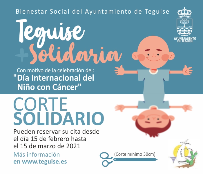 El departamento de Bienestar Social del Ayuntamiento de Teguise pone en marcha la campaña de concienciación y sensibilización "Teguise+Solidaria" con motivo del Día Internacional del Cáncer Infantil, que se celebra el próximo 15 de febrero, con el objetivo de donar pelo para la elaboración de pelucas.