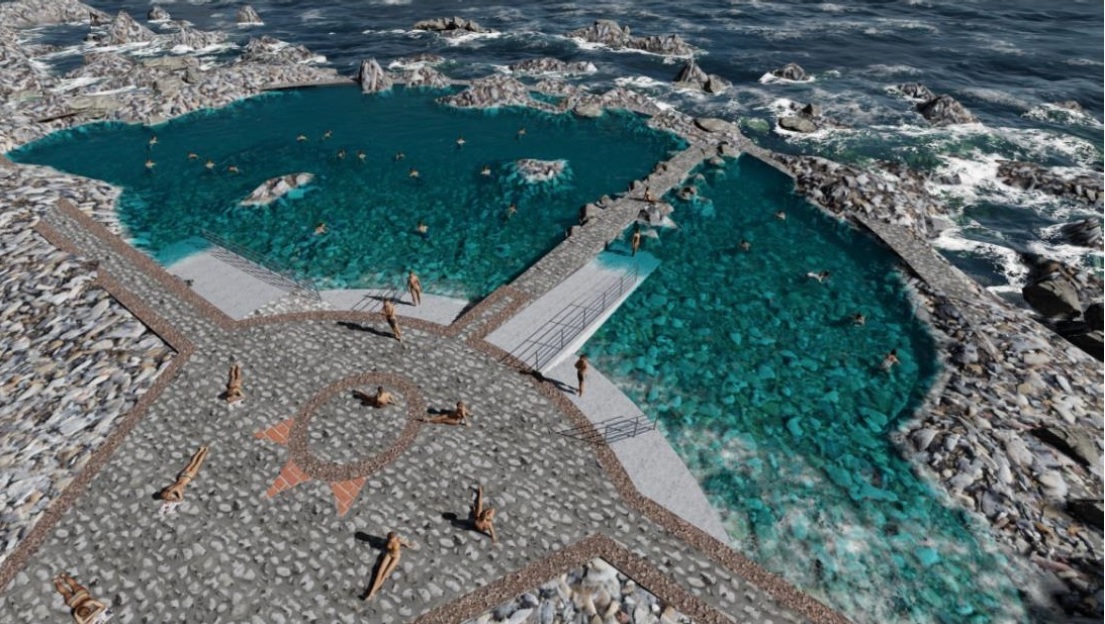 Este último proporciona espacios muy protegidos donde los nadadores inexpertos podrán bañarse con comodidad y seguridad. En periodos de marea baja, cuando la turbulencia sea insignificante, se podrá observar la vida submarina con gafas de buceo. La iniciativa proyecta una zona encharcable en bajamar e inundable en ciclos de marea alta.