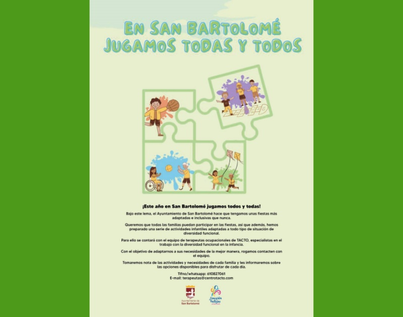 La concejal Estefanía Luzardo también se sumó al agradecimiento a todos los que han puesto su trabajo en la confección del programa, invitando a toda la población a "acercarse a unas fiestas que vuelven a aunar actos para todos los públicos, desde los más pequeños a los más mayores". Además, como novedad este año, la concejal ha explicado que "queremos que todas las familias puedan participar en las fiestas, por ello se han preparado una serie de actividades infantiles adaptadas a todo tipo de situaciones de diversidad funcional".