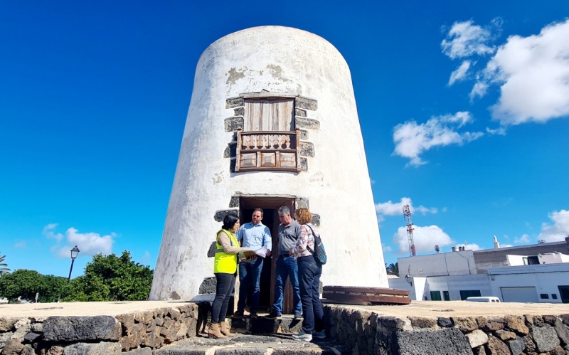 El concejal de Vías y Obras de Teguise, Eugenio Robayna, acompañado por su homólogo en el Cabildo Insular, Jacobo Medina, han visitado el conocido como barrio de Los Molinos de La Villa de Teguise, donde está ubicado el antiguo molino de viento, uno de los iconos del patrimonio histórico del municipio que, durante los próximos meses, permanecerá en rehabilitación.