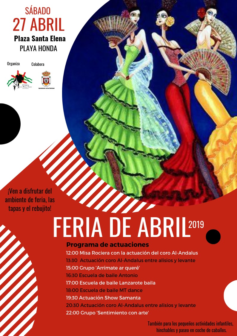 El sábado día 27 de abril, a partir de las 12.00 horas, la Plaza Santa Elena de Playa Honda acogerá una edición más la Feria de Abril, organizada por la Asociación Al-Andalus entre Alisios y que se extenderá hasta la media noche.