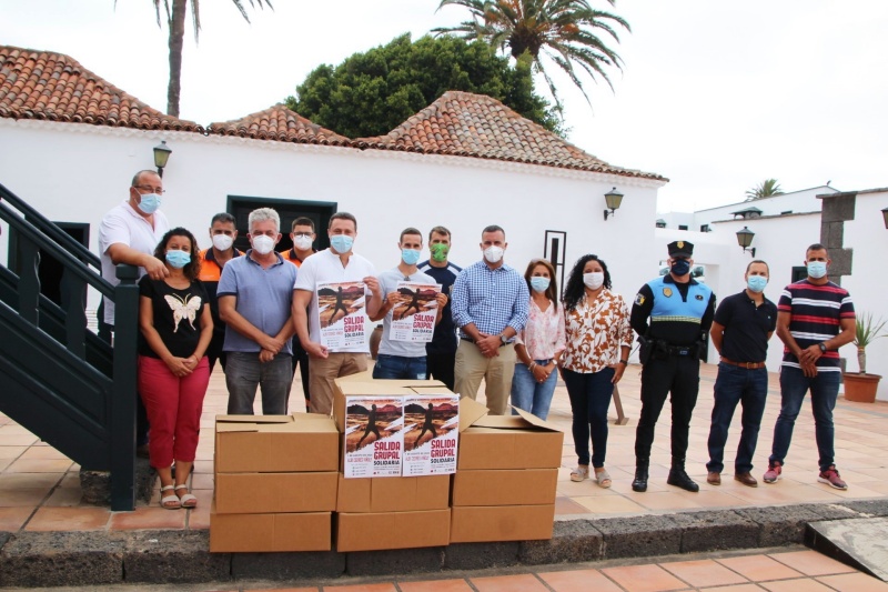 Como un gesto de apoyo a la propuesta solidaria de Albi Cedrés, el alcalde de Yaiza, Óscar Noda, y concejales del gobierno municipal hicieron entrega este viernes de varios lotes de alimentos al organizador y promotor del recorrido.