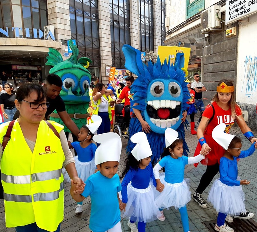 Este año todos los centros educativos han querido hacerse eco del tema del Carnaval de Arrecife y han llenado las calles de superhéroes, pitufos, robots, llegados de los comics más divertidos que protagonizan la temática del carnaval conejero en la capital de Lanzarote.