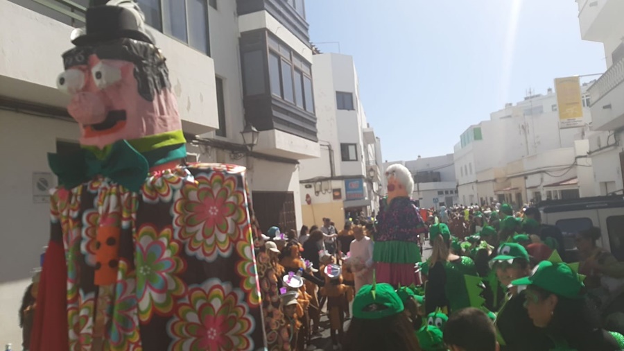 El miércoles, 19, el pasacalles estuvo protagonizado por los alumnos de los colegios La Destila y Adolfo Topham. Ayer jueves fue la comunidad educativa de los CEIP Capellanía, Antonio Zerolo , del barrio de Las Salinas, y Benito Méndez Tarajano, del barrio de Titerroy.