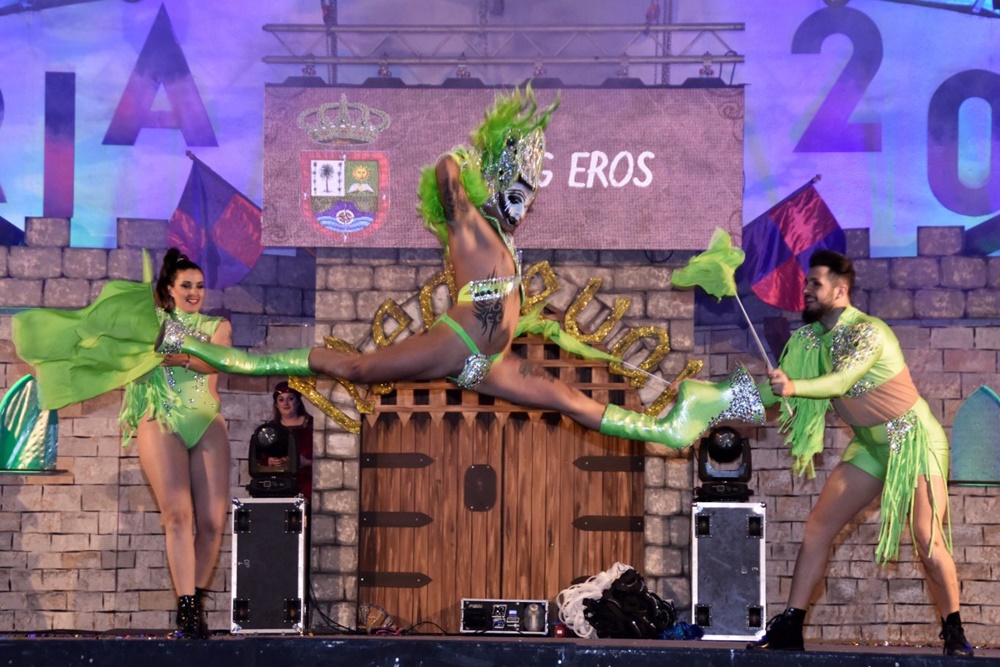 Ya por la noche fue el turno del pregón a cargo de Gustavo Navarro y la Gala Inaugural del Carnaval con la actuación de Escuela de Circo Aerial, Drag Eros, Comparsa Los Cumbacheros y Escuela de Bailes Latinos El Norte Dance.