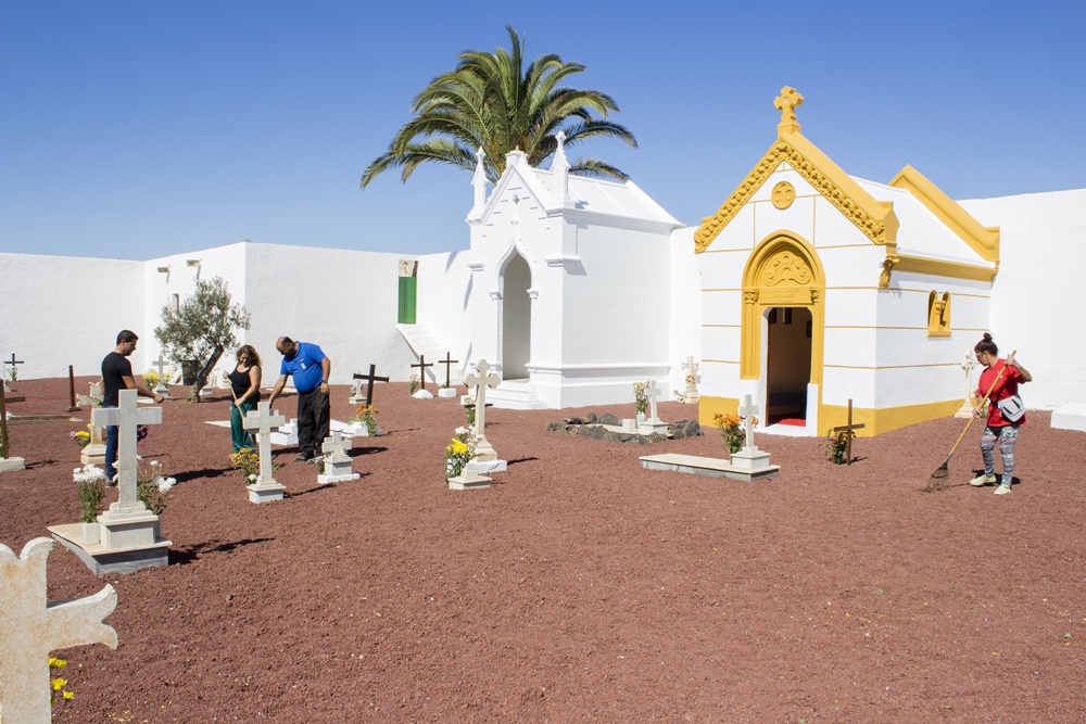 El Cementerio Viejo de la Villa de Teguise, recién galardonado como Mejor Iniciativa Medioambiental, recupera el colorido habitual por estas fechas en las que se celebra el Día de Todos los Santos y se rinde homenaje a los difuntos del municipio.