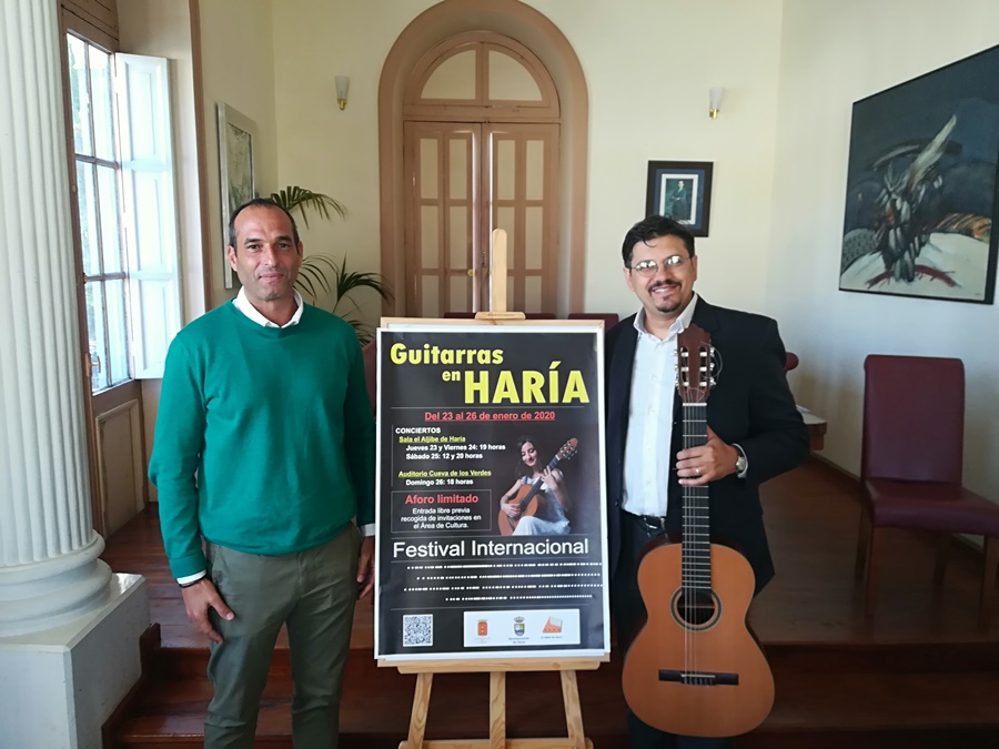 Por tercer año consecutivo vuelve el Festival Internacional de Guitarras al municipio de Haría, cuya presentación tuvo lugar este viernes en el Consistorio norteño, en un acto que contó con la presencia del alcalde, Alfredo Villalba, y el director del evento, Luis Soria.