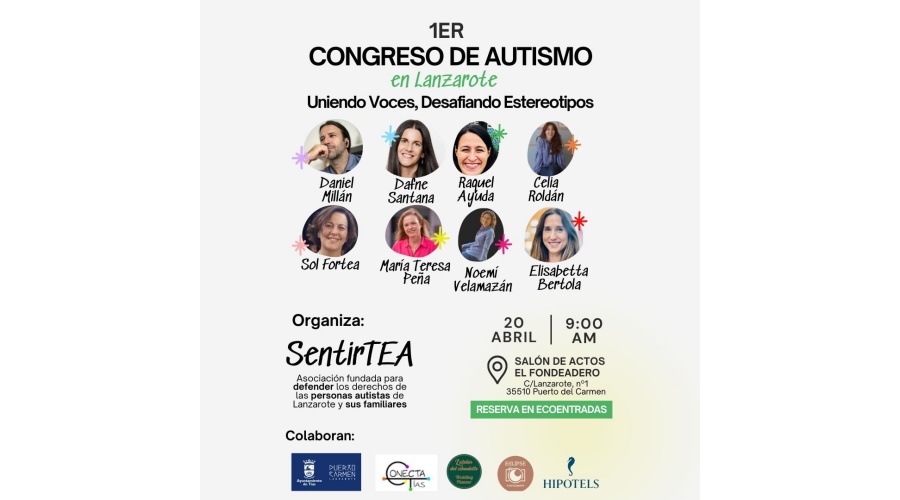 El salón de actos del Centro Cívico El Fondeadero acogerá el próximo 20 de abril el I Congreso de Autismo de Lanzarote, organizado por la asociación SentiTEA con la colaboración del Ayuntamiento de Tías y otras entidades. Durante la jornada se impartirán siete ponencias y se celebrará una mesa redonda para exponer las conclusiones.