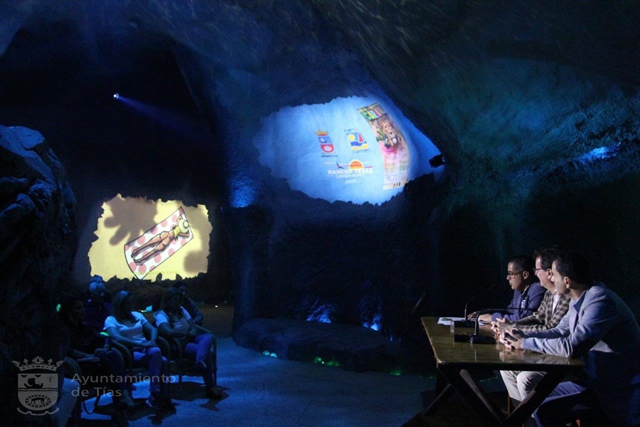 Según explican desde el Ayuntamiento, el colorido de la Naturaleza y el colorido del Carnaval de Puerto del Carmen, que es disfrutado cada año tanto por la población de Lanzarote como por los turistas que nos visitan, se recreó este viernes en una reproducción de tubo volcánico en Rancho Texas con numerosos efectos visuales e imágenes en sus paredes de las carnestolendas de la localidad turística.