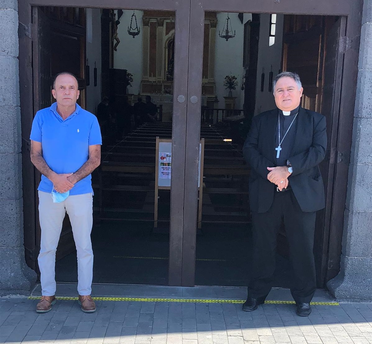 En su encuentro con el Obispo, Machín trató, entre otras cuestiones, la situación e historia de la Ermita de Los Dolores así como las necesidades de las familias más vulnerables en estos momentos de pandemia.