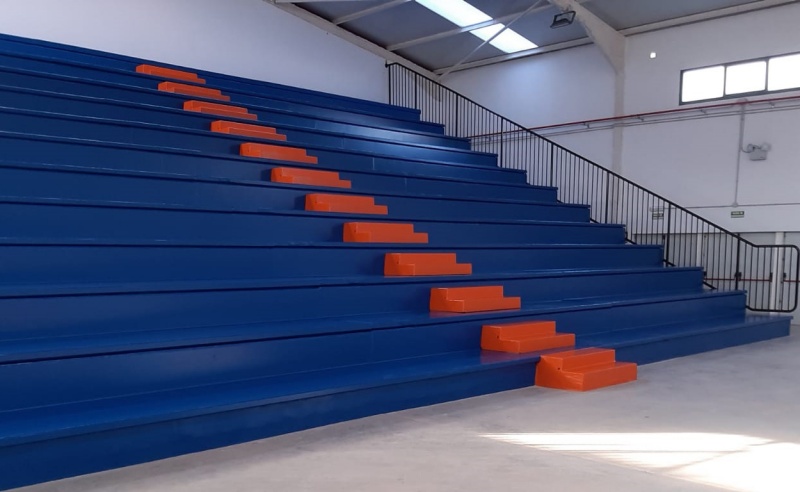 Se ha aplicado un revestimiento plástico sobre el hormigón en la grada para facilitar el cumplimiento de las medidas de seguridad, así como trabajos de pintura y mantenimiento