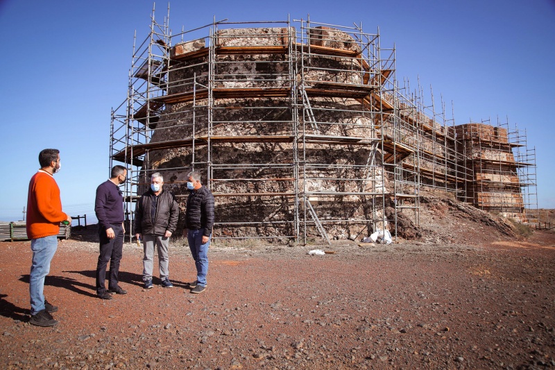 El alcalde de Teguise, Oswaldo Betancort, visitó este jueves las obras de rehabilitación que lleva a cabo la empresa Sustratal SL, especializada en monumentos históricos artísticos, y cuyos técnicos han asegurado al primer edil que en dos semanas llegará el material pendiente para poder continuar con los trabajos de rehabilitación de fachadas exteriores, estructuras portantes de sillería y bases de la muralla y entorno, entre otras cuestiones como la iluminación ornamental.