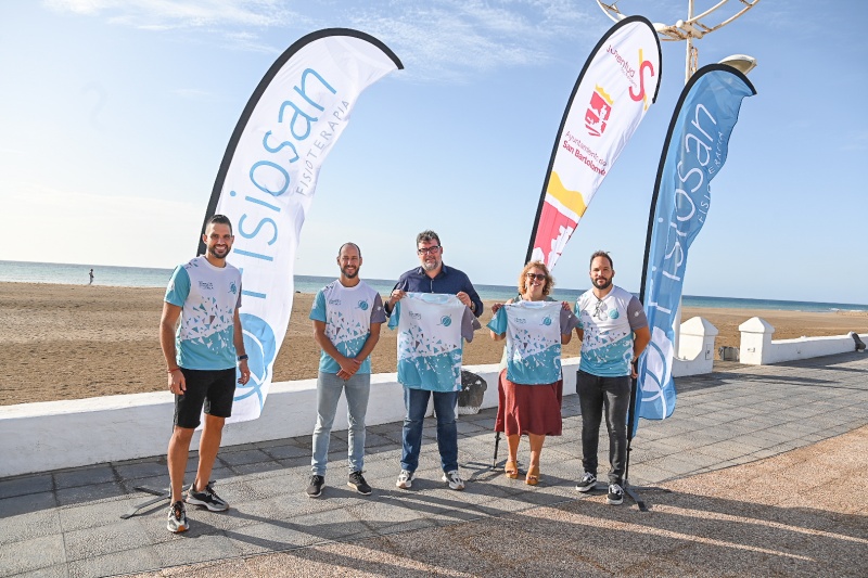 La carrera y marcha solidaria a favor de la lucha contra la esclerosis lateral amiotrófica (ELA) fue presentada este martes por el alcalde de San Bartolomé, Isidro Pérez, la concejala de juventud, Ani Lopes, y responsables de Fisiosan.