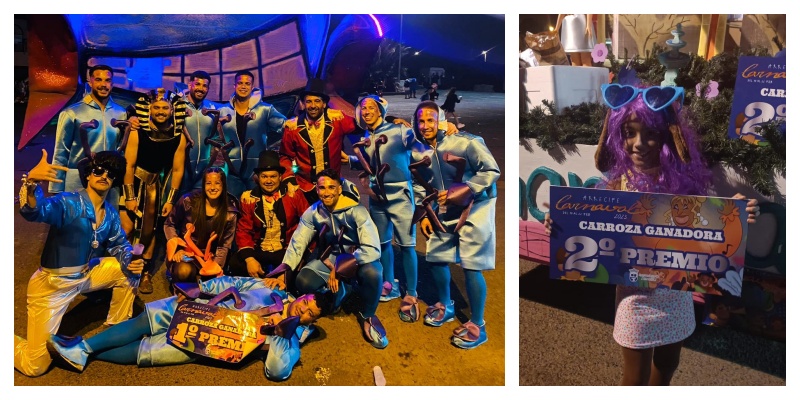 Además, dos carrozas de Tinajo se llevaron los dos primeros premios del coso arrecifeño. El primer premio fue para la carroza “Se nos va la pinza” a cargo del grupo Carroza Los Oxidados. El segundo premio fue para la carroza “Enchantimals”, también tinajera.