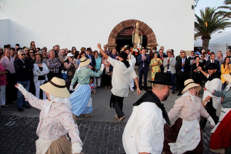 Así, los peregrinos caminaron alrededor de la plaza y regresaron a la puerta de la ermita donde ya estaba dispuesta la Agrupación Folklórica Rubicón para honrar al santo con su cuerpo de toque y baile. La asistencia reconoció el buen hacer de Rubicón y la figura del santo entró nuevamente a la ermita como salió, arropado por una sentida ovación.