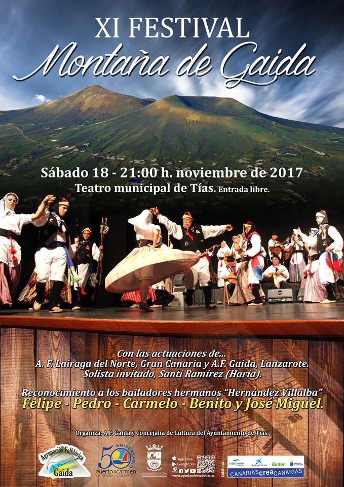 El XI Festival Montaña de Gaida será este sábado, 18, a las 21 horas en el Teatro Municipal de Tías con entrada gratuita. Durante este evento se tributará un reconocimiento a los hermanos bailadores Hernández Villalba: Felipe, Pedro, Carmelo, Benito y José Miguel. La Agrupación Folclórica Gaida, coorganizadora del Festival, también actuará en esta edición.