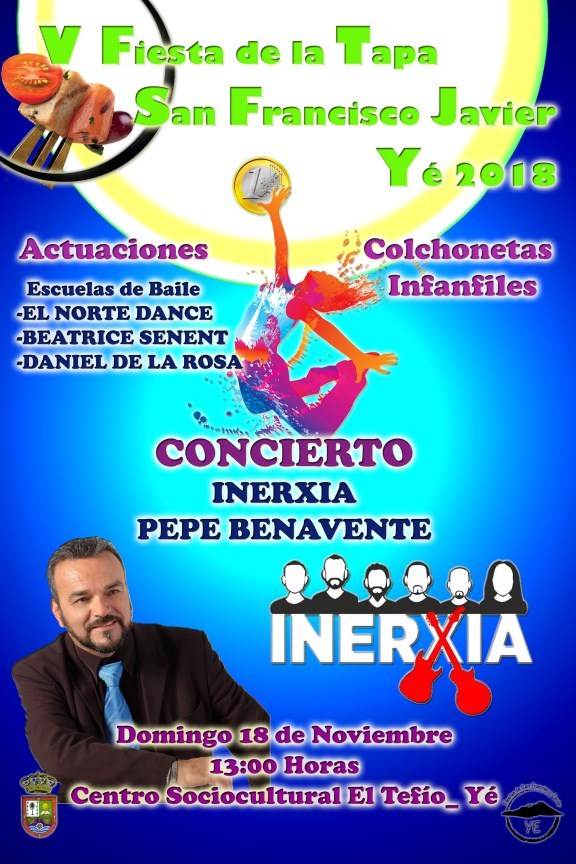 13:00h.- Fiesta de la Tapa a un euro con la Escuela de baile latino El Norte Dance, Beatrice Senent y Daniel de la Rosa. Colchonetas y cochitos para los niños y concierto con Treintitantos y Pepe Benavente