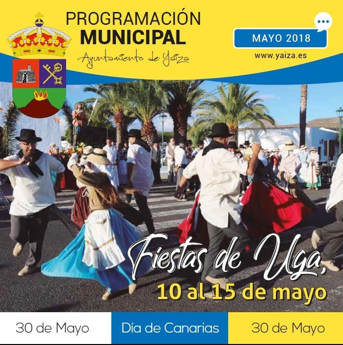 Mayo presenta una amplia oferta de actividades de iniciativa municipal organizadas por el Ayuntamiento de Yaiza. Las fiestas Uga, del 10 al 15 de mayo, que dan inicio a las celebraciones patronales de los pueblos de Yaiza; el Mercado y Cata de Quesos, también en Uga, del 18 al 20; las Jornadas del Camello, con alta participación de escolares, del 22 al 24; y los actos conmemorativos del Día de Canarias previstos el 29 y 30 de mayo; se erigen como eventos destacados del mes en el sur de Lanzarote.