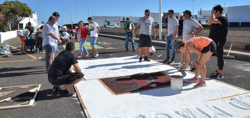 Por su parte, en la tarde del sábado 22, se llevaba a cabo la confección de las tradicionales alfombras del Corpus Christi en la calle Victor Fernández, junto a la iglesia San Antonio, donde participaron los Mayores del Municipio, la Charanga Los Gruñones, el Club Deportivo Magec Tías, la Asociación Cultural Banda de Música Acuarti, la Comisión de Fiestas del pueblo de La Asomada, la Comisión de Fiestas del pueblo de Mácher, la Asociación de Barman de Lanzarote, Caritas Parroquial Diocesana, dos alfombras realizadas por los niños de la Parroquia de Tías y la alfombra institucional del ayuntamiento de Tías, realizada por Luis Acuña. Al finalizar, un grupo de voluntarias de la Parroquia de Tías, La Asomada y Mácher, prepararon una merienda para todos los colectivos participantes en la confección de dichas alfombras.