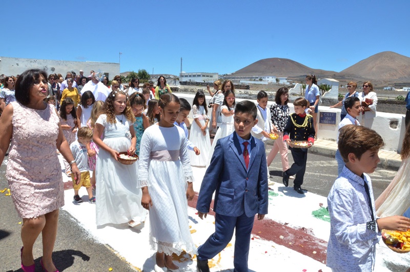 Posteriormente, según destacan desde el Ayuntamiento, el domingo, se llevó a cabo la celebración eucarística y a continuación la procesión del Corpus Christi, con el acompañamiento entre el público asistente, de niños y niñas que recientemente hicieron la primera comunión, así como miembros de la Corporación Municipal del Ayuntamiento de Tías.