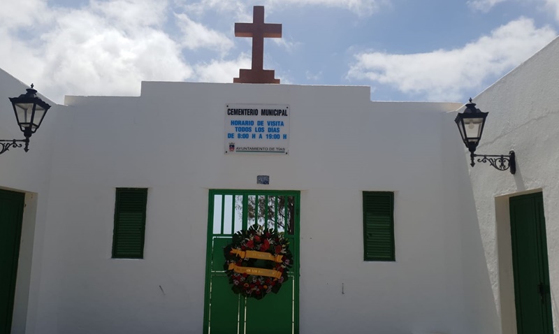 El Ayuntamiento de Tías, a través del área de Cementerio que dirige Pepa González, colocó esta mañana una corona en la puerta del camposanto "en memoria de todos los fallecidos" y en consideración a las personas que desean llevar flores y no pueden debido al confinamiento domiciliario decretado para combatir la expansión del coronavirus Covid-19.