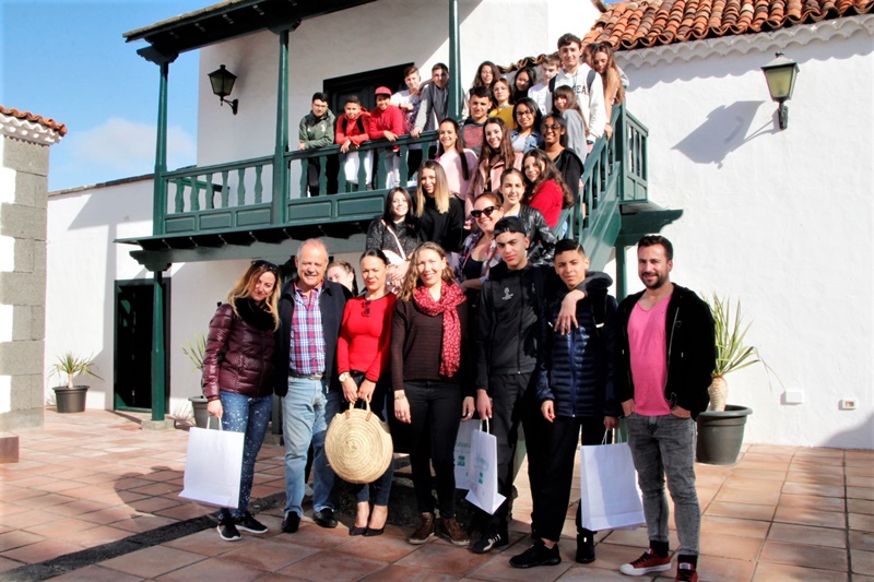 Un grupo de nueve alumnos franceses del collège La Marquisanne, del Departamento de Var, visitó este jueves la Casa de la Cultura Benito Pérez Armas de Yaiza, en compañía de estudiantes y profesores de idiomas del IES Yaiza, para conocer pasajes de la historia del municipio, sitios de interés turístico y aspectos inherentes a la cultura sureña, como parte de las actividades del programa de intercambio europeo Erasmus Trip and Speak. El Ayuntamiento de Yaiza, representado por la concejala de Educación, Manuela Rodríguez, ejerció de anfitrión agasajando a todos los estudiantes junto al director insular de Educación, Mario Pérez, en un acto en el que también participaron los profesores franceses que acompañan a los alumnos desde su país de origen.