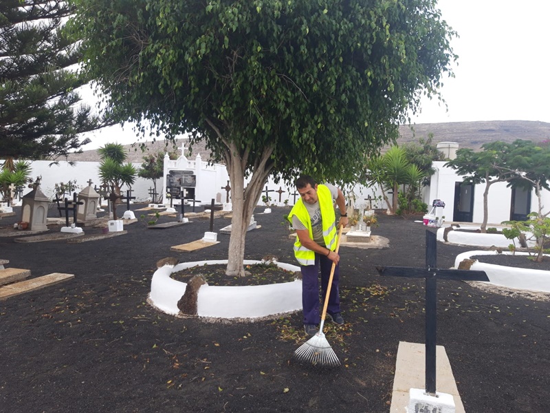 El Ayuntamiento de Haría ha acometido estos días distintas obras de acondicionamiento en el cementerio municipal de cara a la celebración del Día de Todos los Santos y Día de los Difuntos, con el objetivo de ofrecer un espacio más cómodo y agradable a quienes acudan a visitar las tumbas de sus seres queridos.