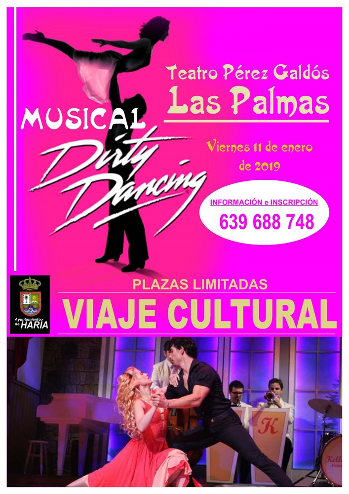 La Concejalía de Cultura del Ayuntamiento de Haría, coordinada por José Pérez Dorta, organiza un viaje a la isla de Gran Canaria el 11 y 12 de enero para asistir al espectáculo musical ‘Dirty Dancing’ en el Teatro Pérez Galdós.