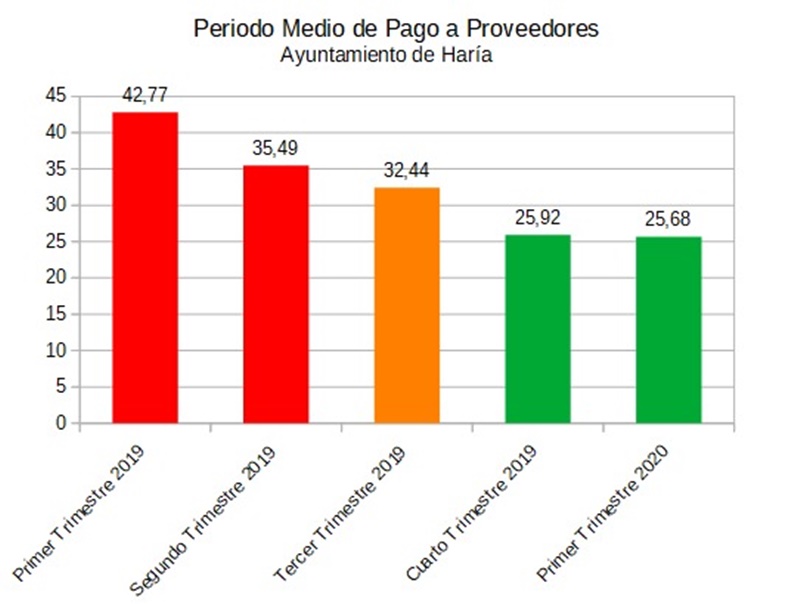 El Ayuntamiento de Haría ha conseguido reducir considerablemente el plazo medio de pago a proveedores, situándose en 25 días durante el primer trimestre de 2020, frente a los 42 días del mismo período del año anterior.