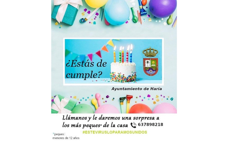 El Ayuntamiento de Haría, en colaboración con Protección Civil, ha puesto en marcha una iniciativa para sorprender a los niños y niñas del municipio, menores de 12 años, que cumplan años durante la cuarentena establecida por el estado de alarma.