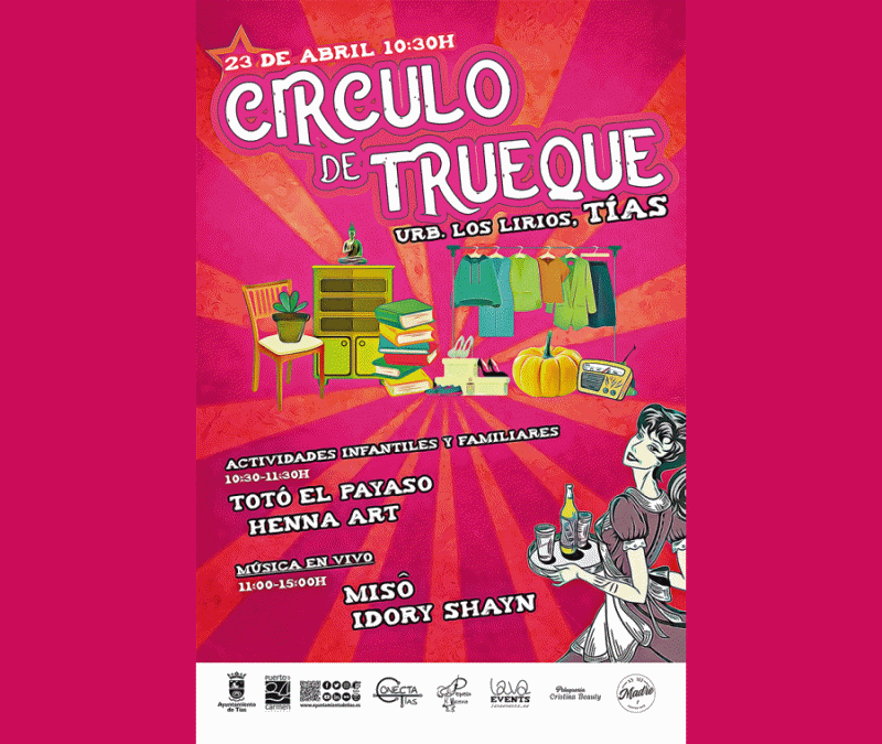Además del "Circulo de Trueque", habrá talleres de henna y actividades infantiles y familiares, todo ello integrado en la estrategia Conecta Tías, que trata de coordinar las acciones de los numerosos colectivos y asociaciones que trabajan en el municipio. Actuarán también Totó el payaso y los artistas Idory Shayn y Misô hasta las 15 horas.