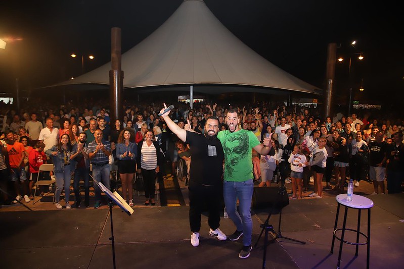 Entre el numeroso público que abarrotaba la plaza del Parque Temático, con la actuación de Kike Pérez y Aarón Gómez, se encontraban la alcaldesa de Arrecife, Astrid Pérez y otros miembros del grupo de gobierno.