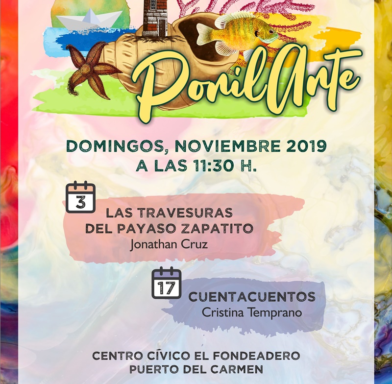 Las carcajadas llenarán el domingo, 3 de noviembre, a las 11.30 horas el salón de actos del Centro Cívico El Fondeadero de Puerto del Carmen gracias a la actuación de Payaso Zapitto. El espectáculo es gratuito y está integrado en el proyecto PorilArte, que ofrece diferentes propuestas culturales y de ocio a las familias del municipio.