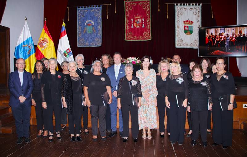 Ante la sala llena de la Casa de la Cultura Benito Pérez Armas y en presencia de autoridades civiles, militares y religiosas, encabezadas por la presidenta del Cabildo de Lanzarote. María Dolores Corujo, el coro abrió el acto solemne del pregón interpretando 'Si Buenos Aires no fuera así' y "Un sarao de la chacona', reafirmando ser agente de la bella expresión del canto.